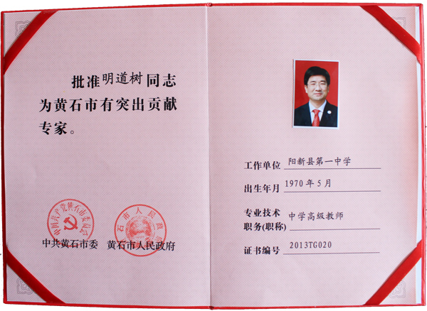 “ 状元”,6名县级高考“状元”(宋军、王建、陈兆华、杨波、陈实、柯湘君),6名清华、北大学子,400多名985、211工程等重大院校学生。他教学之余,积极参加教研教改,先后在省级以上刊物发表论文数十篇,指导学生发表习作多篇,为黄石地区基础教育质量提高作出了重要贡献。他先后被评为“阳新县教书育人标兵”、“阳新县十大杰出青年”、“阳新县专业技术拔尖人才”、“阳新县十大名师”、“黄石市中学学科带头人”、“黄石市学生喜爱的好老师”、“黄石市优秀教师”、“湖北省优秀语文教师”、“全国中学校园文化教育实践研究先进个人”。他此次被黄石市委、市政府评为“黄石市有突出贡献专家”,是我县基础教育领域唯一获此殊荣的教师,也是黄石市高中学段唯一获此殊荣的教师。他目前担任阳新县中语会理事长,黄石市中语会副理事长,黄石市中学文联副秘书长。