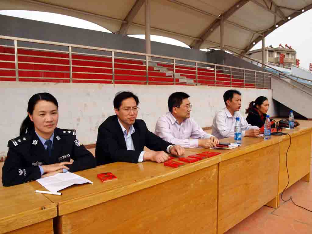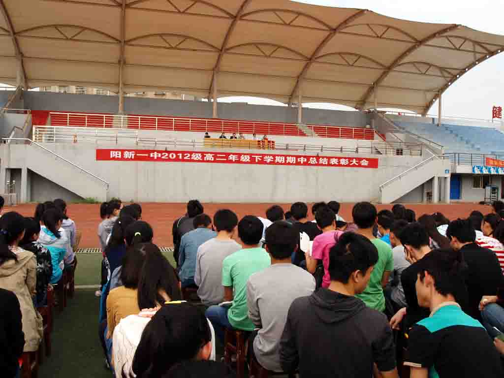 429 下午,大会现场 阳新一中高二年级在学校运动场举行下学期期中总结表彰大会。阳新一中副校长明道树、梁师稳、高二年级主任李朝忠、高二党支部书记徐美姝及部分学生家长出席总结表彰大会。大会由高二年级主任李朝忠主持。