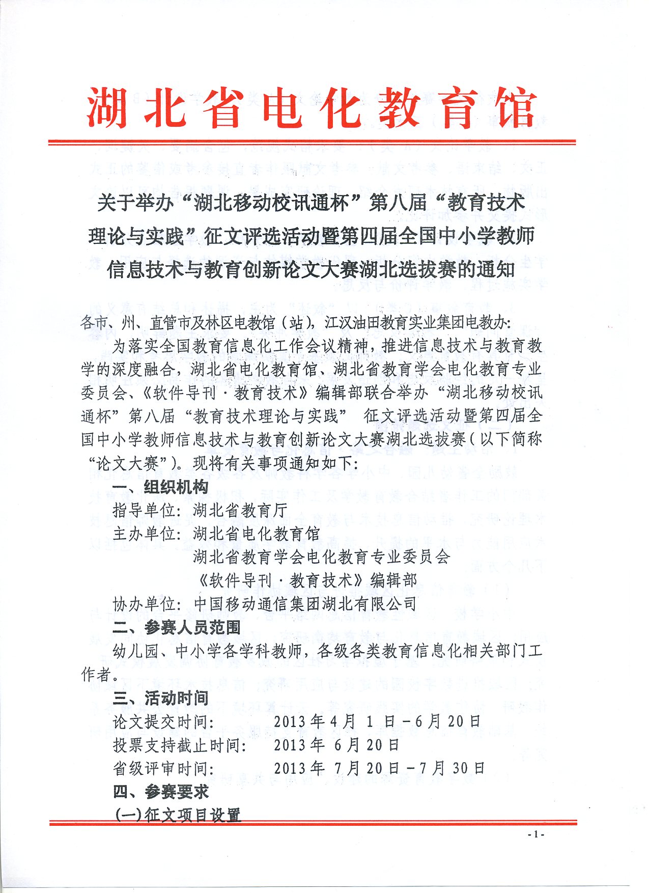 为落实全国教育信息化工作会议精神,推进信息技术与教育教学的深度融合,湖北省电化教育馆、湖北省教育学会电化教育专业委员会、《软件导刊教育技术》编辑部联合举办第八届教育技术理论与实践征文评选活动。为落实这项工作,我县也将启动阳新县2013教育技术理论与实践征文评选活动,现将有关事项通知如下: