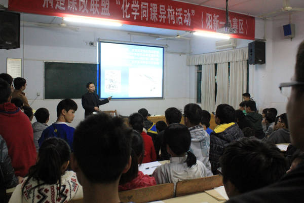 个学生科技爱好者,这里,阳新一中物理教师朱建华正在给同学们作“三小”创作(小发明、小制作和科技小论文)指导讲座。