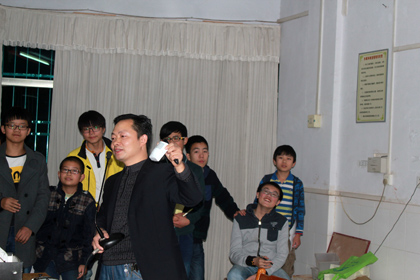 11月16日晚上7:00,阳新一中拥有300个座位的教学楼二楼电教室挤进了500多