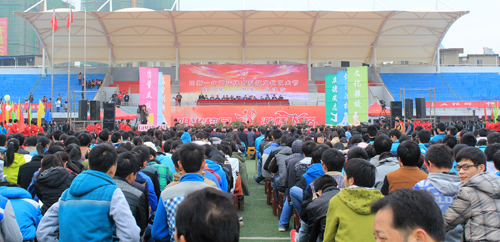 音乐欢畅,高歌和谐盛世;彩旗飘扬,同铸中国梦想。11月28日,阳新一中隆重举行首届体育科技文化艺术节。首届艺术节主题是“中国梦·一中梦·成才梦”。阳新县副县长邱治国,县政协副主席程春梅,武汉生物工程学院机电学院党总支书记黄利平、学院招生处处长刘学贵,县教育局党委书记陈前波,政府办副主任孙孟武,县科协主席陈树生,县其他科局领导,县教育局科室长,县教育局直属学校、各乡镇中心学校领导及赞助单位代表出席了开幕式。