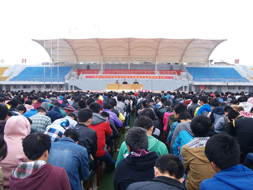 虽然天气寒冷,但是同学们精神饱满,大会秩序井然。此次大会既是期中总结表彰会,也是复习备考分析会,更是高考冲刺鼓劲会。(刘杰)
