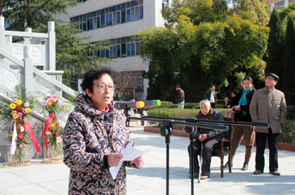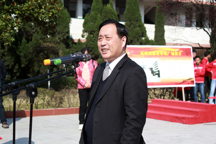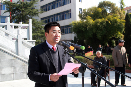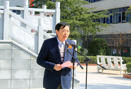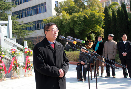 阳新一中校长明道树首先致欢迎词,明校长代表阳新一中四千多名师生欢迎各位嘉宾的到来,明校长表示,今日石瑛先生铜像座落在继承了儒学优秀传统,着眼于未来创新发展的阳新一中校园里的日子,是一中全体学子的幸事,一中学子以后可以时时忆先贤、学先贤,一中“文化校园”的建设上又增添了浓墨重彩的一笔。