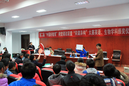阳新一中校长明道树为获得一等奖的班级颁奖
