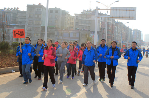 2014年12月31日下午,天朗气清,午后的冬日暖阳分外和煦。我校正举行阳新一中全体教职工“庆元旦,迎新春”冬季长跑比赛。