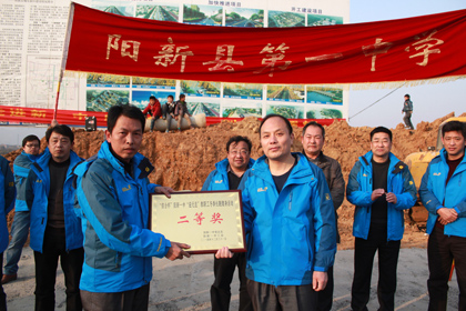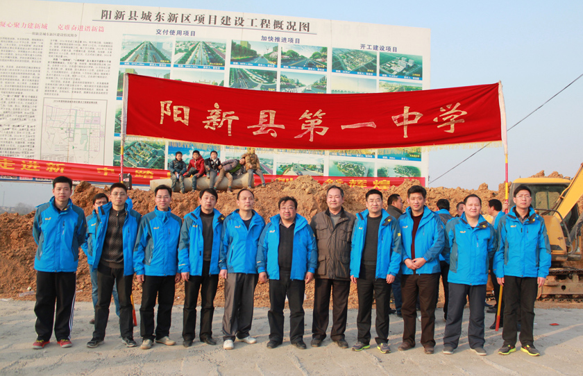 参加阳新一中长跑活动的领导、嘉宾在阳新城东新区教育城工地合影 | |
