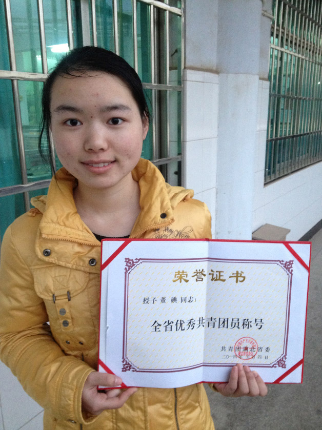 董碘同学被评为“省优秀共青团员”