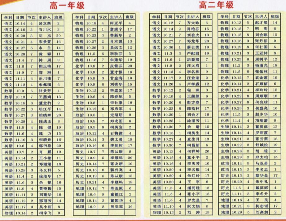 附:公开课时间表: