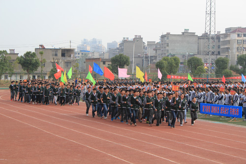 阳新一中各年级师生方阵依次列队进场。国旗方阵,校旗方阵,校徽方阵,迈步方正,整齐威武;彩旗方阵,花环方阵,彩球方阵,摇曳生姿;各年级师生方阵,精神抖擞,步伐铿锵,昂首挺胸,气宇轩昂。他们壮志满怀,英姿飒爽地走过主席台。