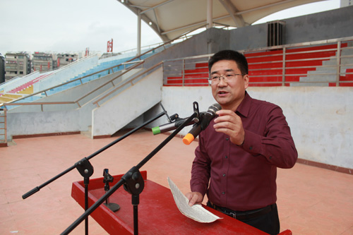 11月14日上午,天公作美,阳光明媚。我校2016届高三全体师生齐聚新运动场,召开上学期期中总结表彰暨高考200天冲刺动员大会。出席此次大会的有县教育局党委书记陈前波,我校校长、党总支书记明道树,副校长潘龙星,副校长柯美宝,副校长梁师稳,校纪检书记方长风,工会主席肖绪曙,副校长李永红,政教室主任石章权,年级相关领导及高三(1)部和高三(2)部全体师生。