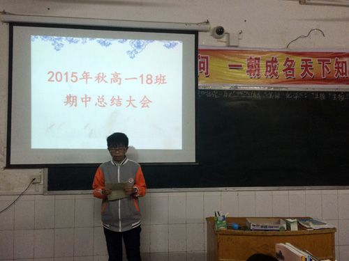 本周四晚,2015级高一18班全体同学自发组织、召开了期中总结表彰大会,班主任裴太勇老师参加。