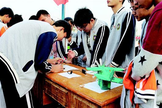 这是该校第二届体育科技文化艺术节上的情景,这个持续近一周的艺术节,真正是学生们的狂欢节。除了科技展和书画展之外,还有吸引眼球的机器人大赛,值得期待的体育运动盛会,而且,学校还特邀了名校专家,来给学生们作科技讲座。“说实话,一直很期待艺术节,想借这个机会放松一下,更想利用这次活动,学到一些平时课堂里很少能接触到的东西。”该校高二学生小郭的话,代表了绝大部分学生的心声。