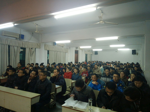 然后,刘书记和江主任分别从纪律和学习两方面向大家作了汇报。刘书记借学校值日团队记载情况为载体,指出现阶段各班在纪律方面存在最大的问题便是迟到和上课睡觉现象,呼吁同学们潜意识里要警钟长鸣,杜绝不良习惯;江主任主要针对年级在教学安排上的调整给大家作了详细的分析和解释,并提出适应新变化的要求,还结合自己班上的情况向同学们介绍学习方法,强调时间意识。