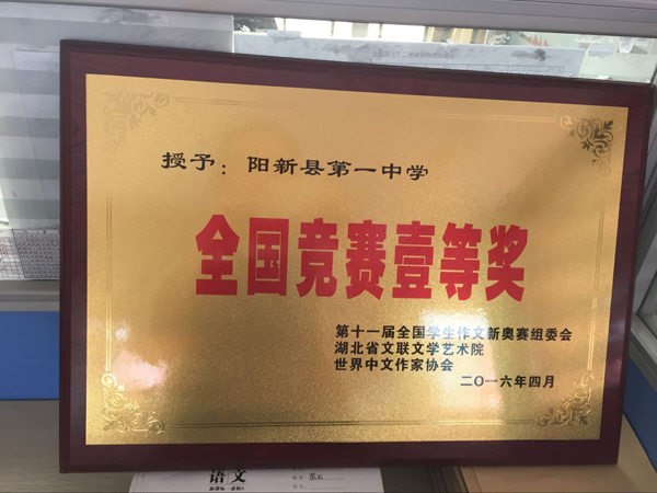 阳新一中高二语文组,本着在活动中学习、在学习中活动的教学理念,充分挖掘学生的潜力,努力培养学生的学习兴趣,丰富学生的学习生活。高二语文组历时半年之久,充分发动学生,认真批改所交作文,然后经过两层筛选,送出了参赛作文320篇。老师们的辛勤劳动,终于得到了肯定。本次大赛中,获得一等奖作文114篇,二等奖作文126篇,取得了优秀的成绩。
