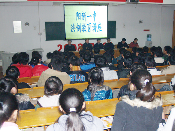 2009年12月24日下午,我校以阶梯教室为主会场,通过校园语音系统向高一所有教室广播的方式召开了高一年级法制教育大会。会议邀请公安局上街派出所曾凡胜同志、县司法局基教科黄龙兵科长先后就未成年人犯罪问题作了案例剖析,以案说法,生动感人,教训深刻。