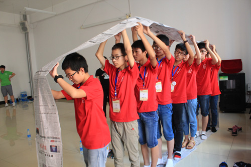 下午进行了三场比赛,我从中学到了不少,第一场比“鸡蛋、小鸡、凤凰、人”是一个类似石头、剪刀、布的游戏。虽说有一部分靠运气,但更看重的是个人能力。看你会不会布局,寻找对手。第二场名为“履带战车”。这是一场考验团队协作的竞技,需要一个领导需要一群队友,获胜的技术在于配合。第三场是“做衣服”考察一个团队的创新能力。