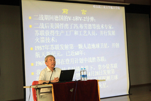 8:30,在活动中心101,营员们聆听了航天知识科普讲座。主讲嘉宾为航天学院博士生导师刘暾教授,刘暾曾参与了“神舟五号”的设计,是中国“嫦娥”登月计划子课题的负责人。刘暾教授为同学们讲解了飞行器的工作原理,简述我国的载人航天现状和空间站组成等。刘暾教授精彩的演讲既丰富了营员们的航天知识,激起了大家对航天的兴趣,更为他们的未来科学之路奠定了深厚的基础。