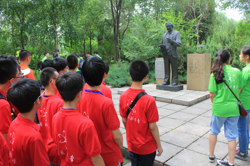 短暂的午休后,下午1:30,营员们前往哈工大科学园。在马祖光院士的雕像前,主持人为大家介绍了马祖光院士伟大无私的事迹,使营员们深受感动。随后,营员们一一向前献花,向马祖光教授致敬,向为祖国、事业和学生奉献一生的科学工作者致敬。