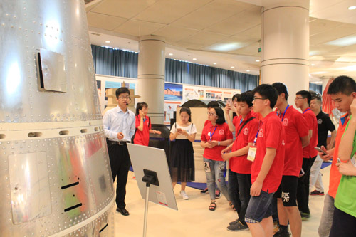 怀着对马祖光教授的缅怀,营员们走进哈尔滨工业大学航天馆。航天馆内收藏了大量我国发射过的卫星、火箭、导弹的模型或实体,为营员们构建了中国航天事业的大框架。解说员在介绍我国辉煌的航天历史的同时,也向营员们科普了航天知识,更展开介绍了导弹的发射原理、打击方式原理等等,使营员们大开眼界。