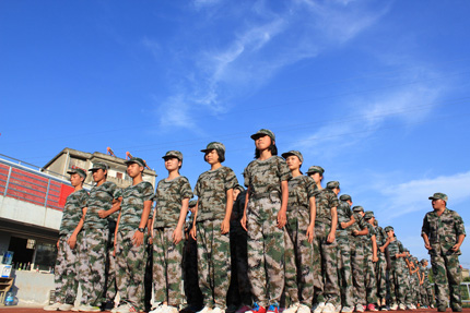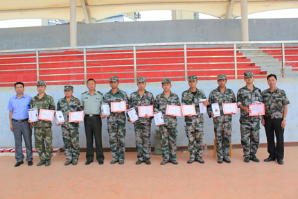 汇报表演结束后,分管高一的主管领导梁师稳副校长作了总结发言,肯定了同学们的精神,表扬军训中涌现出来的先进分子,要求同学们将这种不怕吃苦的精神带到今后的学习中去。最后学校对军训表演中表现突出的班级、教官和各班的优秀学员进行了表彰,对承训部队官兵们表达了由衷的感谢。在校歌的歌声,同学们含着泪送别教官。随着明道树校长宣布结营仪式结束,也预示着整个暑期夏令营暨军训活动圆满成功。同学们通过军训,提高了身体素质,锻炼了意志品质,也增强了组织纪律性。