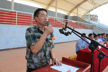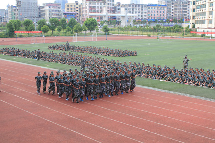 830日上午,12502016级高一新生经过为期6天的军训后,在足球场上进行了汇报演出。承训部队领导柏教官,县教育局工会主席柯美星,阳新一中校长明道树以及全体校级领导检阅了学生的军训成果。汇报表演由分管政教工作副校长柯美宝主持。