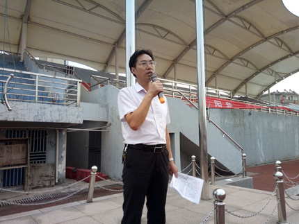 9月18日早晨7点,高一年级全体学生和班主任齐聚校运动场,开展了一周一次的晨训活动。舒长华老师作了关于背诵的专题发言。