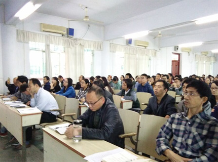 本次主讲是华师一附中特级教师何军老师,针对高三一轮复习备考,指导我们研究考纲和高考试题,找出高考命题的方向,并指导我们找出解决方案。讲课内容层次鲜明,重点突出,实用可操作,启发性极强。他的演讲多次被学生的掌声打断……