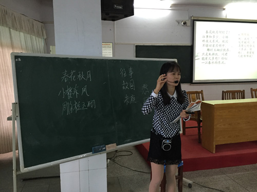 下午3时,各位理事到高二(5)班随堂听课。高二年级青年语文教师乐川椽为学生们上了一堂李煜的《虞美人》。教学活动在活跃的气氛和充分的师生互动中结束。