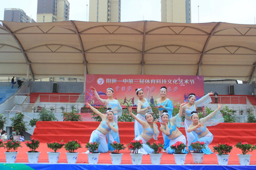 汇报演出均以“团队”的形式呈现,团队通过活动锻炼队伍,凝聚共识,共进共荣。艺术体操、舞蹈表演、诗歌朗诵、大合唱都是师生同台竞技,很好地体现了阳新一中“阳光校园,激情飞扬,文化强校,共同成长”的办学理念和发展愿景。
