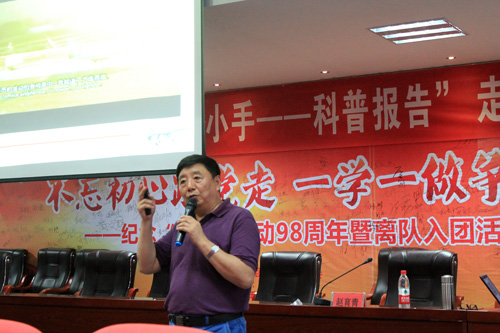 525日下午,“大手拉小手——中国科普报告”走进阳新一中。空军退役飞行员、大校赵育青应邀给阳新一中学子作了一场生动的《空中机器人——无人机》科普报告。报告会由阳新一中工会主席肖绪曙主持,阳新一中校长明道树、阳新科协主席徐美芳等领导与同学们一起聆听了赵育青大校的精彩报告。