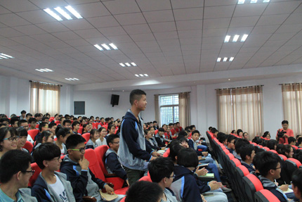 报告会中,学生踊跃向赵育青大校提问