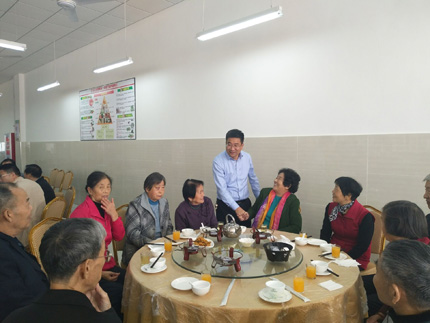 明道树校长与老教师共进午餐