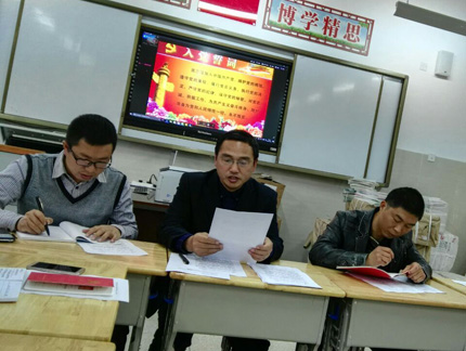 会议首先完成了党员民主生活会的四项规定动作,全体党员起立面对党旗重温入党誓词、全体党员按月缴纳党费、全体党员集体诵读党章党规、党支部提名全体党员表决评议“每月一星”。经过年级全体党员教师的民主评议,高二年级(1) 部党支部“十一月之星”为英语鲍淑荃老师。