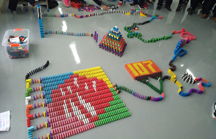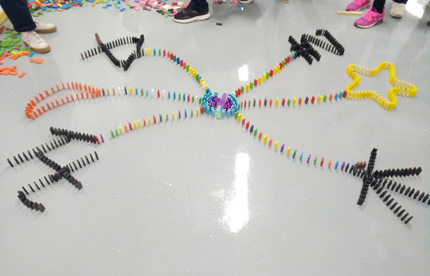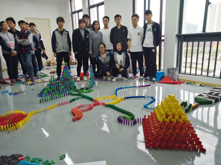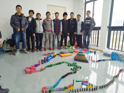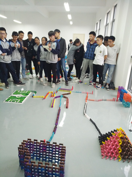 多米诺骨牌发源于中国,在欧美社会中则蔚为流行,是一种综合德智体美劳的运动,可以培养当代中小学生的团队协作能力,考验学生体力、耐心、意志力和临场应变能力,提高学生的动手能力。在第四届体育科技文化艺术节中,我校再次将多米诺骨牌纳入科技比赛项目内容,11月17日(周五)晚上,柯贤根老师对每个年级选派的队伍进行相关培训。正式比赛于11月23日下午2:30在新校区至高楼三楼机器人实验室举行。经过紧张、激烈、漫长的比赛过程,评委从骨牌倒塌情况、图案设计和寓意解说等几个方面进行打分,依据平均分高低依次决出特等奖团队一个、一等奖团队两个、二等奖团队两个。