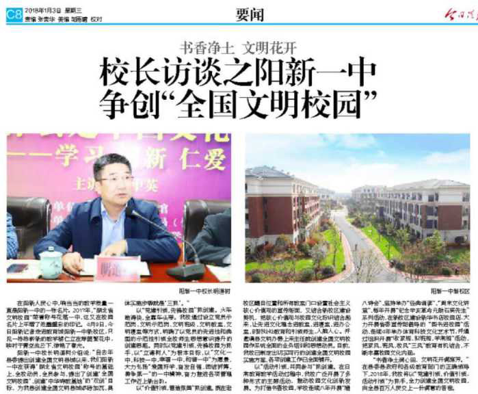 ——校长访谈之阳新一中争创“全国文明校园”