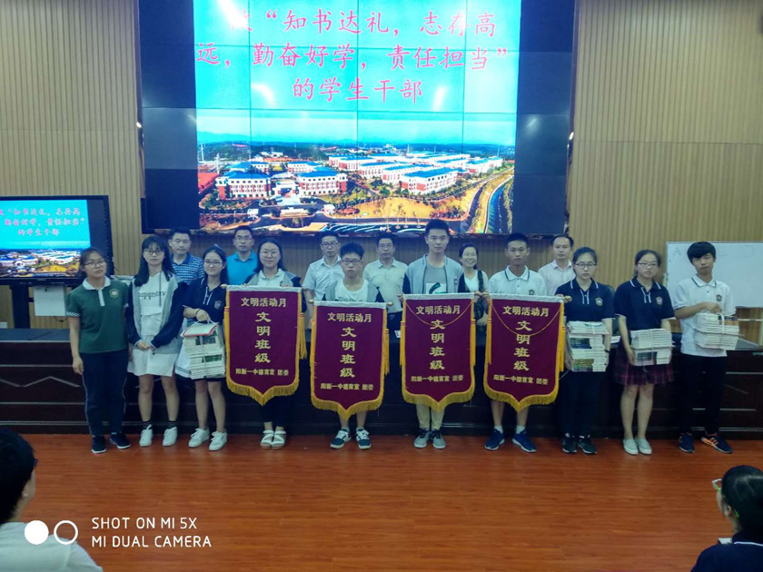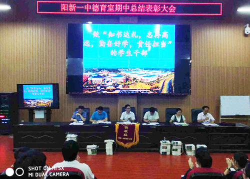 会议由程志勇主任主持。首先,列席干部为优秀班级及学生干部颁奖。胡琼书记宣读了团委表彰名单,陈洪星主任宣读了高二学生会表彰名单,洪登榜主任宣读了高一学生会表彰名单。其次,秦青山主任总结了阳新一中一学年来班级量化管理情况,并从“知书达礼,勤奋好学”与人生发展的关系讲述了文明礼仪的重要性,并勉励学生干部积极主动参与到班级管理事务中。紧接着,程志勇主任作了重要发言,程主任以古今中外事例勉励学生,以知识武装头脑,以文明彰显青春,争做“知书达礼,志存高远,勤奋好学,责任担当”的学生干部。