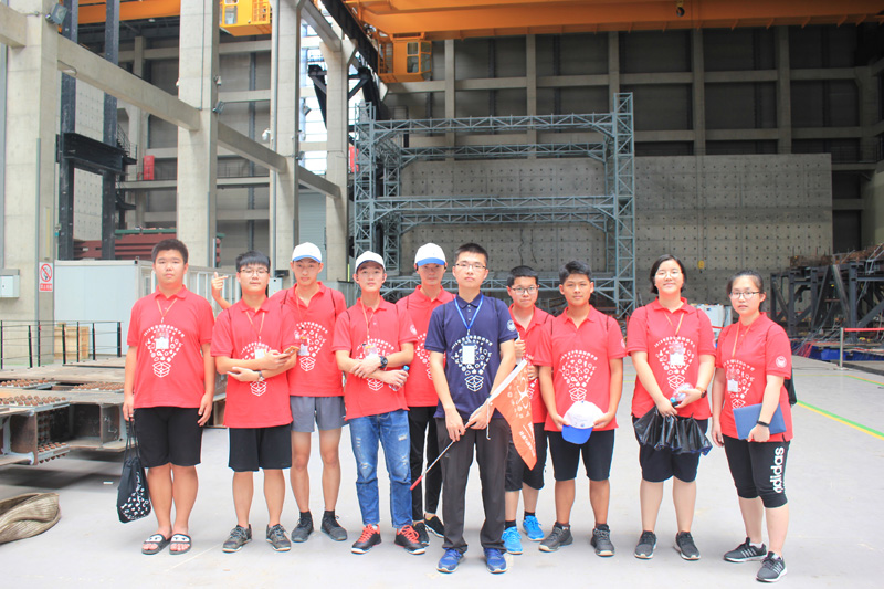 离开风洞实验中心,我们来到了地震工程馆。 与实验中心相比, 这里更像一个工地,地上堆放着的,空中架的,都是实打实的材料。营员们跟随着讲解老师的步伐, 初步了解了我国振动试验台的构造及成就,同时也懂得了一些土木工程方面的知识。骄阳似火,在上海最热的这几天时间里,营员们的满腔热情,与蓬勃发展的科学技术碰撞出了更加灿烂的火花。