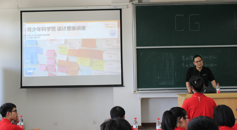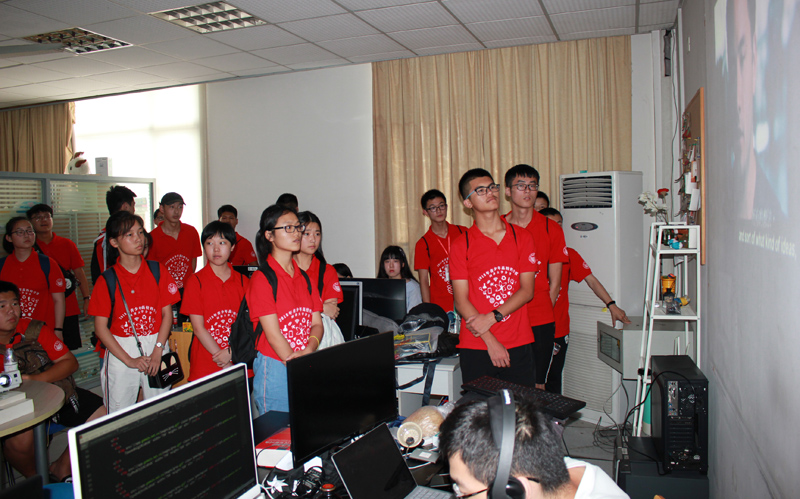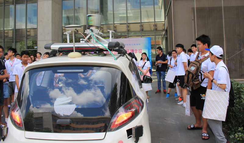 技术与设计分营的营员们于上午9时来到同济大学智信管开始了他们的科技之旅。电信学院副院长尹学锋老师亲自主持欢迎仪式,尹院长首先简要地介绍了同济大学的百年历史,向大家展示了同济近年发展的大事记和校园概况。之后电信学院的学长们向大家展示了无人驾驶车,在详细介绍无人车的运行原理及特点之后,还邀请了一位分营带队老师进行体验。