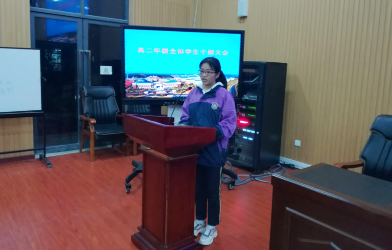 学生干部代表———高二年级1部学生会副主席陈澍、2部22班班长马一分别发言。陈澍同学汇报了作为学生会干部,在工作、学习、生活方面取得的进步,表达了对栽培她的老师和学生干部岗位的感恩之情。马一同学分享了作为班长,享受老师和同学的信任,同时热爱班干部岗位,服务班级的心得。