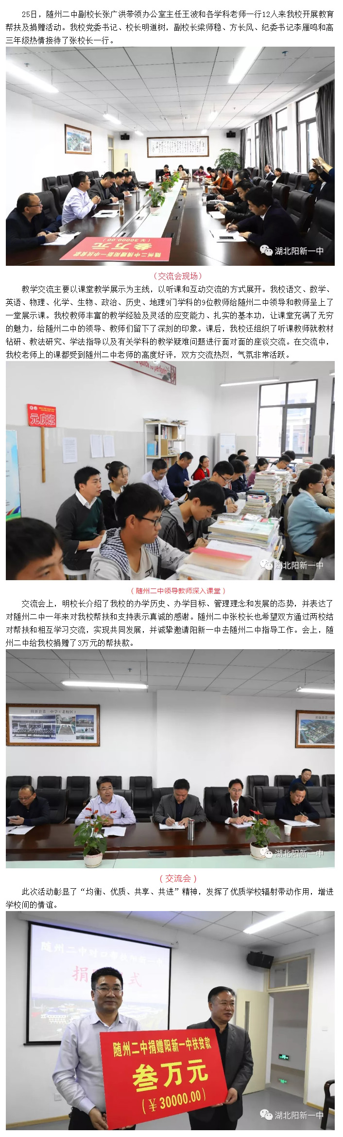 ——随州二中来我校开展帮扶捐赠活动