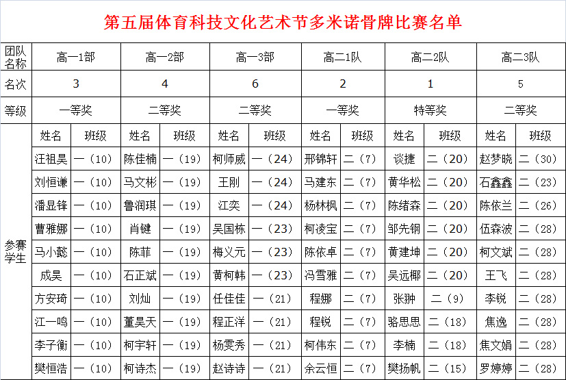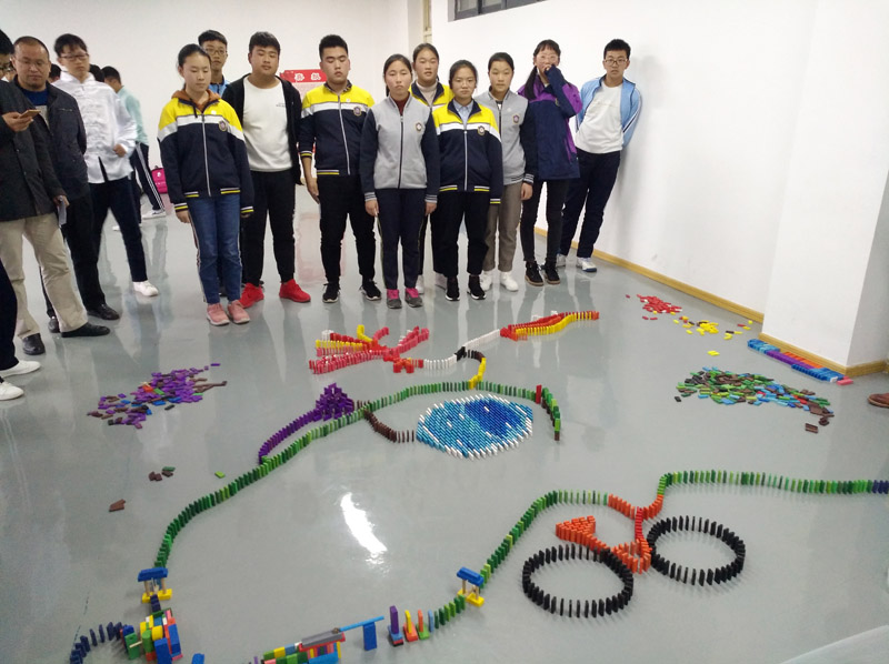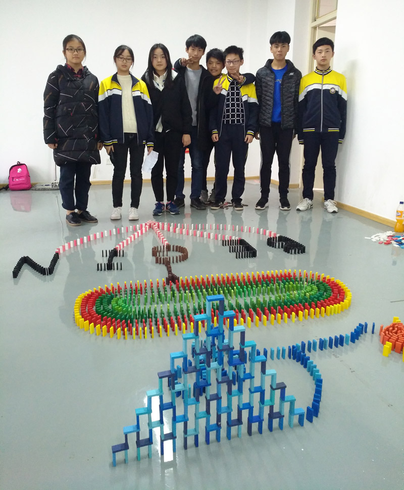 多米诺骨牌发源于中国,在欧美社会中则蔚为流行,是一种综合德智体美劳的运动,可以培养当代中小学生的团队协作能力,考验学生体力、耐心、意志力和临场应变能力,提高学生的动手能力。在第五届体育科技文化艺术节中,我校再次将多米诺骨牌纳入科技比赛项目内容,比赛于11月22日下午2:30在新校区至高楼三楼机器人实验室举行。经过紧张、激烈、漫长的比赛过程,评委从骨牌倒塌情况、图案设计和寓意演讲等几个方面进行打分,依据平均分高低依次决出特等奖团队一个、一等奖团队两个、二等奖团队三个。