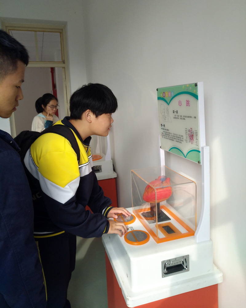 满载科学知识的科普大篷车,摆出了20多台崭新科普实验仪器:“小球运动”、“看谁跑得快”、“红外血管成像”、“如果你老了”、“脉搏波血压计”、“心跳”、“听话的小球”、“短期记忆测试”、“ 铿锵锣鼓”、“虚拟现实体验”、“食物金字塔”、“大变身”、“旋转的银蛋”、“家庭救护小常识”、“磁力转动摆”、“健康误区”、“尖端放电”、“磁力转盘”、“声光反应测试”、“读眼有术”、“人体与健康”、“最速降线”、“窥视无穷”、“共振环”、机器人等,这些科普实验融入了光学、电磁学、声学、物理学、数学等科学知识和科学原理,集知识性、趣味性、互动性为一体,同学们带着“为什么”“怎么办”等问题,试一试、想一想,边看、边问、边操作,在娱乐中悟出科学原理,亲身体验了科普的神奇与乐趣,激发了学生的探究意识和创新能力。