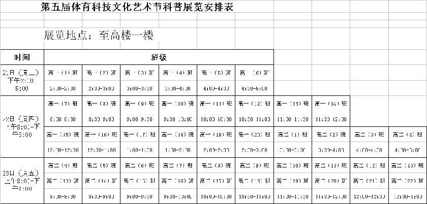 11月22日,阳新一中第五体育科技文化艺术节拉开帷幕,科技项目是本次大型活动的重点内容之一。应阳新一中的邀请,黄石科技馆把科普大篷车开进阳新一中新校区校园,在这里举行为期三天的科普展览,为了保证展览秩序,让校园每位科普爱好者能享受到科普大餐,学校对展览时间作了详细安排。