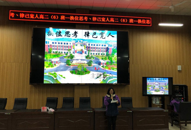 今晚7:00,校团委在明礼楼阶梯教室举行以“换位思考,律己宽人”为主题的班会磨课活动。主办班级为高二(6)班。高二(6)班同学准备充分,全班同学服装统一,营造出良好的主题班会氛围。班会形式多样,有精美的多媒体课件,有分角色诗歌朗诵。在问题互动环节,大家踊跃发言。女学生主持人声音洪亮,语言表达能力和控制场面能力均很强。最后,高二2部支部书记洪登榜书记对本次班会进行点评。班会亮点多多,大家精神状态饱满,整个过程紧扣主题,实例丰富且生动,极具特色与启发性。通过这次“换位思考,律已宽人”为主题的班会磨课,全体同学学习了人与人之间相处的秘诀,深刻理解了生活中换位思考和律己宽人的重要性。