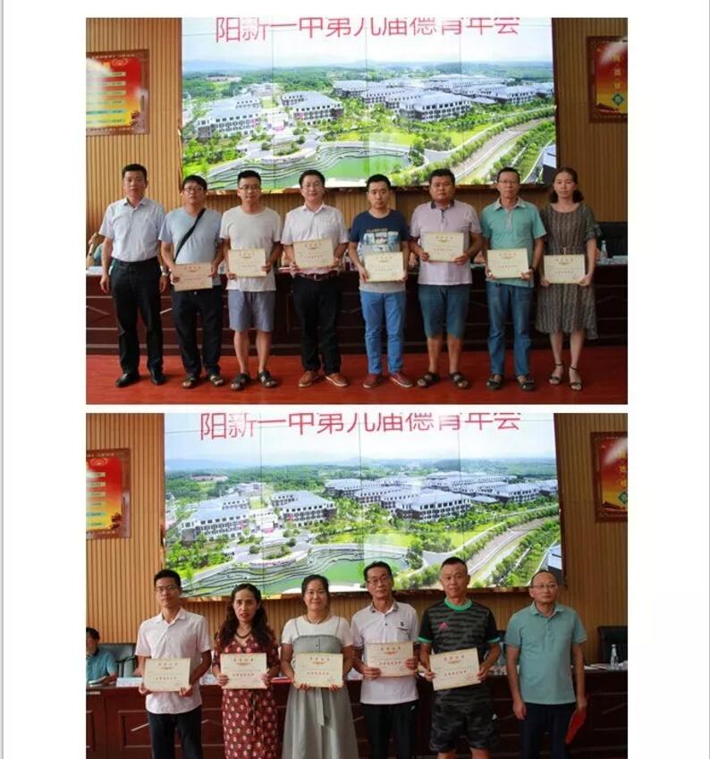 会议开始,阳新一中综治办主任王平心宣读表彰文件。依据年度综合量化考核,党政办、财务室等被评为优秀处室团队。2018级高一1部、2018级高一3部等被评为优秀年级团队。新校区周四、周五值日团队、老校区周日团队等被评为优秀值日团队。艺术教研室、体育教研室男足教练组被评为优秀贡献团队。姜玉梅、何育龙被评为优秀心理辅导教师。魏力、刘杰等19人被评为优秀班主任,余晴、陈春佳等17人被评为优秀德育导师。论文《片心天共远,生涯山同青》等22篇被评为一、二等奖。