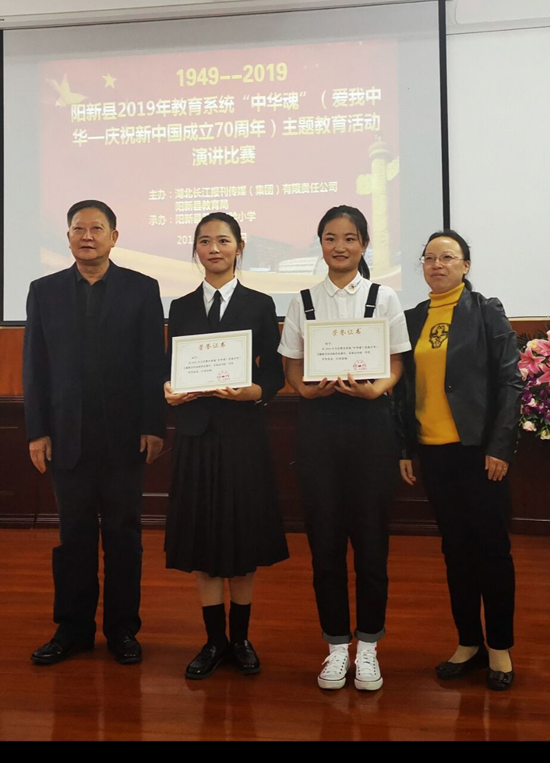 【喜讯】在“阳新县教育系统爱我中华师生演讲比赛”中,我校高一(8)班学生钟蕾、高一(19)班吴雨馨以并列第一名的成绩荣获高中组一等奖,她俩将代表阳新学子参加黄石市的演讲大赛。