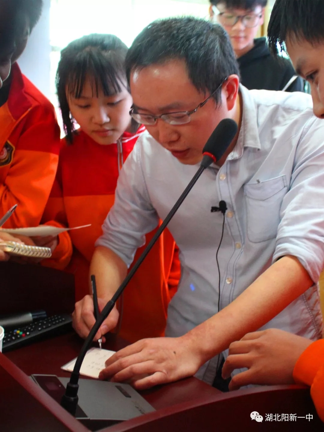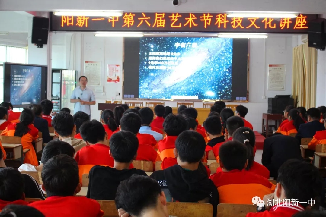 7日下午,武汉轻工大学李鸣博士莅临我校作主题为“宇宙大爆炸”的讲座。党委委员、副校长王能勇主持活动。高二3部物理学科爱好者近200人参加了盛会。