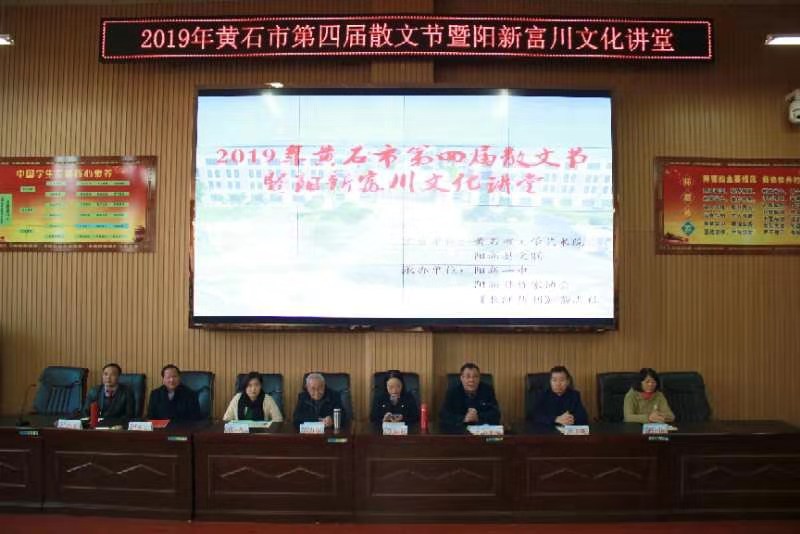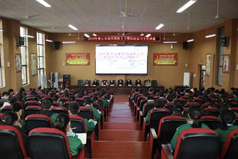 22日上午,筑梦新时代2019年黄石市第四届散文节暨阳新富川文化讲堂活动在我校举行。市文联党组副书记、副主席吕永超主持活动,阳新一中副校长柯美宝致欢迎辞。