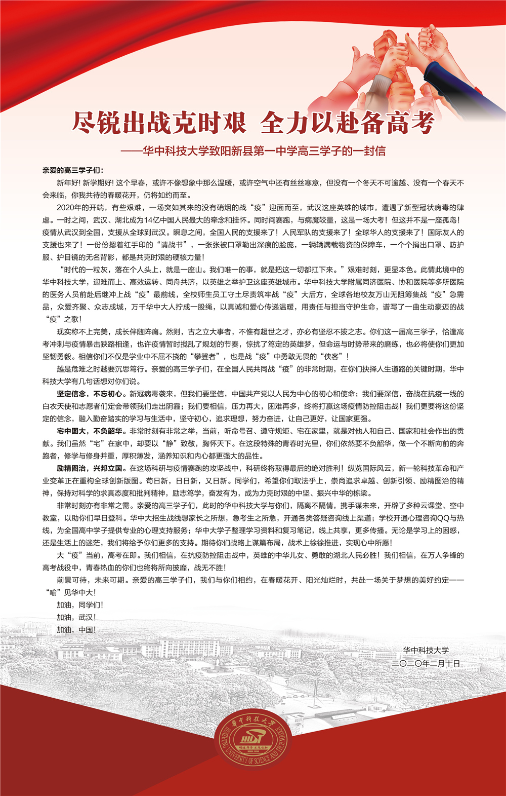——华中科技大学致高三学子的一封信